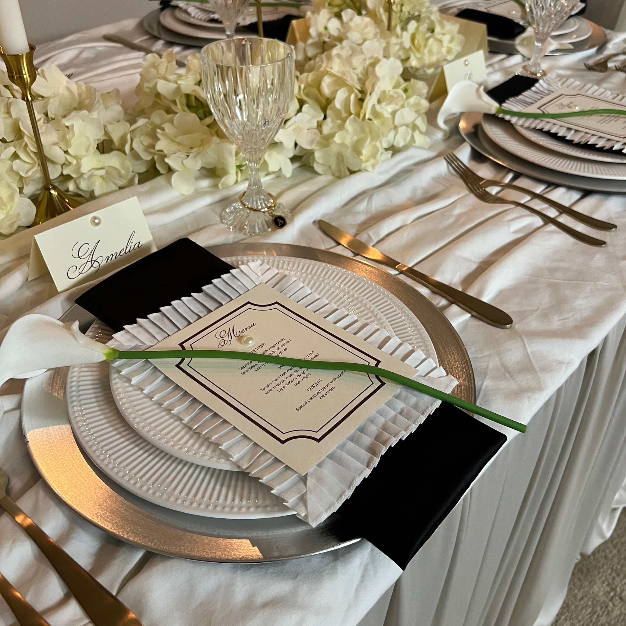 Elevated tablescapes and private installations for intimate gatherings and refined celebrations.